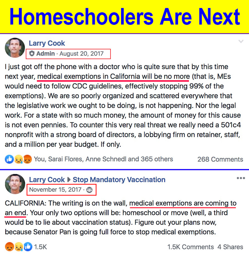 California: So, the LA Times has already begun their crusade against families who are vaccine free and homeschool. To think that somehow the Democrats who voted in favor of AB2109, SB277, SB276 & SB714 are all of the sudden going to vote to allow homeschoolers to remain vaccine free is crazy making to me. These Democrats are AGENDA DRIVEN. They are not going to listen to their constituents, a homeschooler lobby, or anyone else. They have proven that their allegiance is to the vaccine industry. REPEATEDLY.