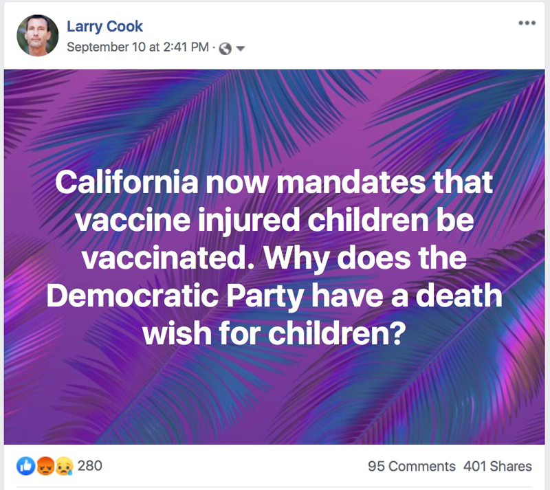Over the last couple of days – while on Facebook – I’ve posted a couple/few dozen posts that have irked and pissed off some anti-vaxxers. But first, a bit of backstory. When senator Pan introduced SB277 and I got involved, my view of the situation was that this was not an isolated incident and rather, it was just the beginning, especially when I took AB2109 into account (Pan’s bill-to-law that required parents to talk to a doctor to get an exemption). So, rather than focus on SB277 only, I decided to focus on the concept of mandatory vaccination and that is how Stop Mandatory Vaccination was born. My analysis of the situation proved to be correct: SB277 was the big entryway into launching vaccine mandate legislation throughout the USA, and perhaps even the world.