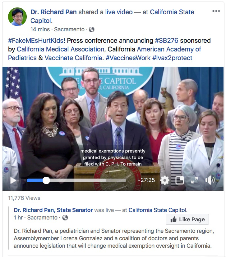 Ok, California, time to get busy! Senator Pan has introduced the bill we have all been expecting. SB276, a bill to restrict medical exemptions in California, has gone live and Assemblything Lorena G, Senator Scott Wiener and Assemblymember Cecilia Aguiar Curry appear to be the first to support Pan’s monstrosity (although no one is officially listed as coauthor/sponsor yet).