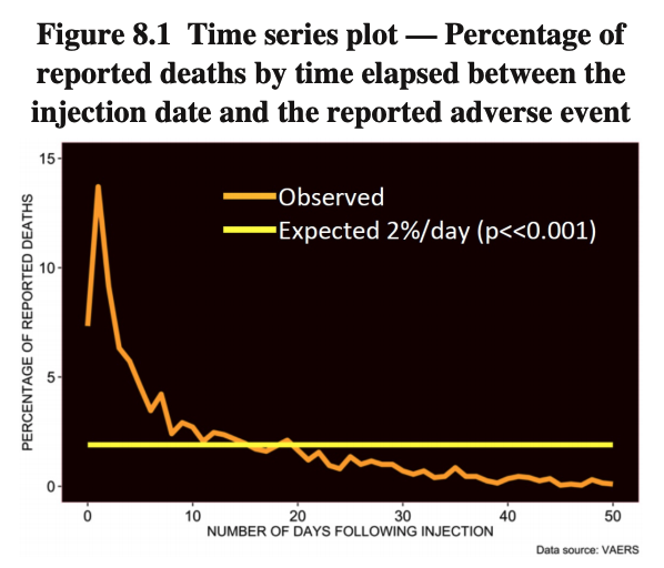 An exciting new paper from the journal Science, Public Health Policy & the Law makes a case for causality for the COVID vaccine and negative adverse events based on a startling intuition – If these adverse events were unrelated to vaccination, then we would expect the probability of reports to be more uniform post-receipt of the COVID vaccine.