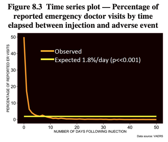 The following graphic from the study shows the clustering probability for ER visits right after the COVID vaccine: