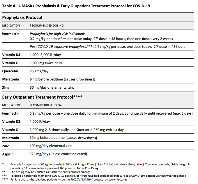 In their study, the Front Line COVID-19 Critical Care Alliance, demonstrated the efficacy of ivermectin as both a treatment and prophylaxis, and also the the efficacy of their I-MASK+ protocol below: