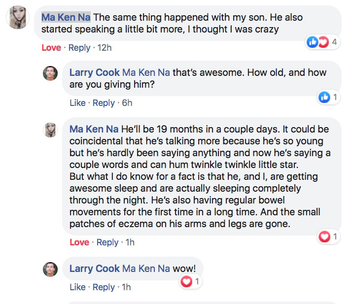I’ve also given it to all 5 of our kids. Our 3 oldest girls (10 year old twins and 11 year old) have been taking it. They all got runny noses within a day of taking it but nothing terrible. It’s been helping them with bowel movements. They were also vaccinated when they were younger so I wonder if that’s why they seemed to get a cold after taking it? Our youngest two boys (5 year old and 2.5 year old) have not been vaccinated and they haven’t had any signs of a cold or anything. It’s helped both of them with bowel movements. Our 5 year old has some sensory problems and gross motor delays so he acts out quite often. We’ve been amazed at how much it’s helped his mood! Today we had a full day of no meltdowns!!! That’s huge for our son! I believe it’s a game changer for him. He’s had the best results out of all of us, so we plan to continue using it. Thank you so much for sharing and thanks for all the time you dedicate to helping all of us!