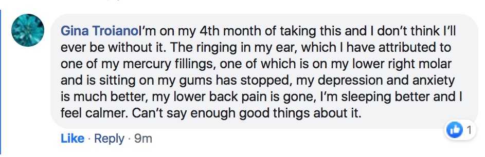 Thank you so much for introducing me to this product. The amount of detox from my jawbones in just a week has been amazing.  Tell people to take EDTA/garlic capsules at the same time..Doubles the punch