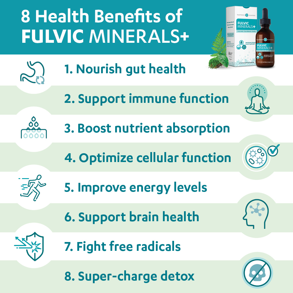 Fulvic Minerals+ will give you an easy way to nourish gut health, replenish vital trace minerals, enhance detoxification and much more.