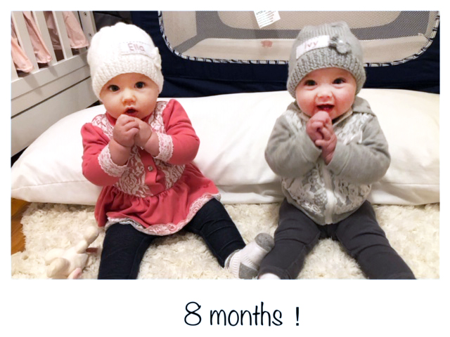 Jaime: Ivy is small and mighty. She’s a charmer, funny, and happy. Ella is sweet and snuggly, and also very funny. They’re very active and ready to be on the move! They adore their big brother and he adores them. They are exclusively breastfed and have always steadily gained weight. They’re chubby, happy and healthy.