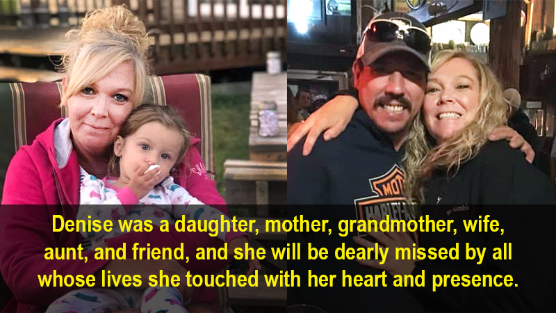 Even with a heart condition, Denise did normal things like ride out back on their property in their four-wheeler. They would build a fire and sit out by a creek and enjoy nature. Now that’s all gone. There are places I went with her that I’m not sure I ever want to go there again without her. I am so angry that she had to do these vaccinations and she was totally against them. My grandson and his wife don’t vaccinate their daughter. My family are so against putting poison in our bodies.