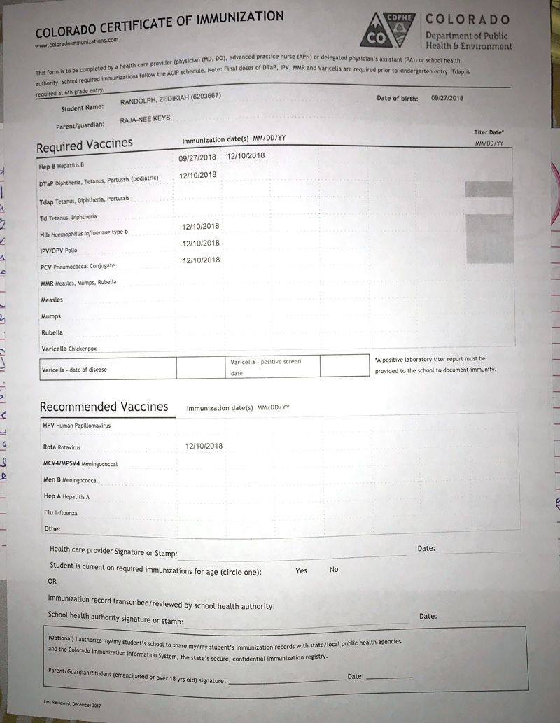 Raja-Nee: Zedikiah was born September 27th, 2018 in Denver, Colorado. Despite pregnancy complications, Zedikiah was born healthy weighing 5 pounds, 15.5 ounces. He passed all of his newborn screenings and attended all of his appointments. Zedikiah was perfectly healthy. All medical records we have obtained have stated so.
