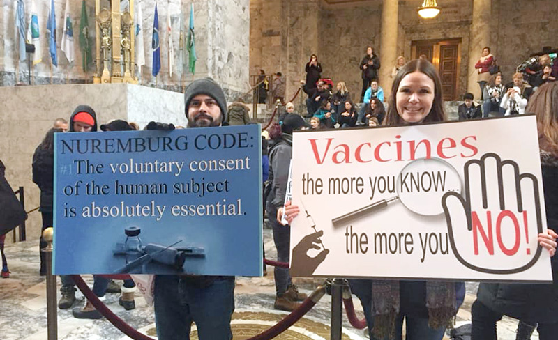 Washington State is one of several states where vaccine choice and parental rights are in critical jeopardy from proposed bills that violate informed consent, human rights, and medical/health freedom. (The other states include New York, Oregon, New Jersey, and Colorado and many more). In Washington, there are active bills in both the House and Senate that seek to remove exemptions. House Bill 1638 in Washington aims to remove philosophical and personal exemptions to the MMR vaccine. Leading up to HB 1638’s hearing, a companion bill from the Senate, SB 5841, was filed, which if passed, removes the philosophical/personal exemptions, except religious and medical exemptions, to ALL vaccines, required for school attendance. These bills were drafted on the heels of media hysteria and fear-mongering. Washington State’s Governor, Jay Inslee, declared a “State of Emergency” as a result of a few dozen measles cases reported in Clark County, (in Southern Washington near Oregon) in a small subgroup of a religious Slavic community that was exposed to an Eastern European measles genotype strain. One measles case was reported in Seattle and one in Oregon.