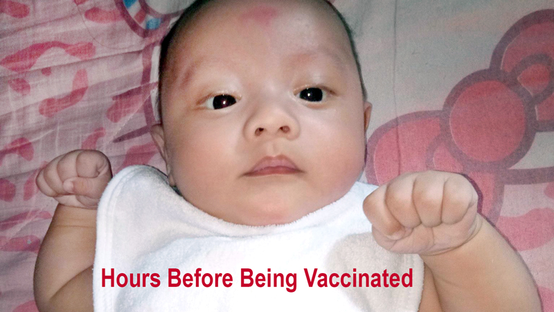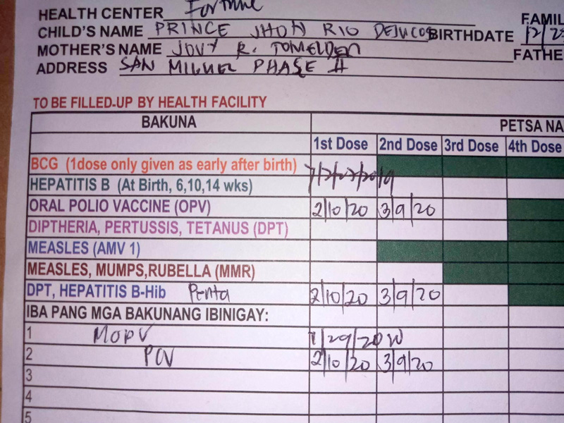 Jovy: On March 9, 2020 we visited the Fortune Health Center to have my baby’s scheduled vaccines. We went there as early as 7:00 a.m. and Rio received his shots around 9:00 a.m. After the medical personnel took my baby’s weight and height, they let us in the room for him to be vaccinated. The two medical personnel pointed to one another on who will be injecting the vaccines, but then one of them (likely a midwife) was the one who injected all. (We still don’t know their names.) They never informed us that vaccines have adverse side effects.