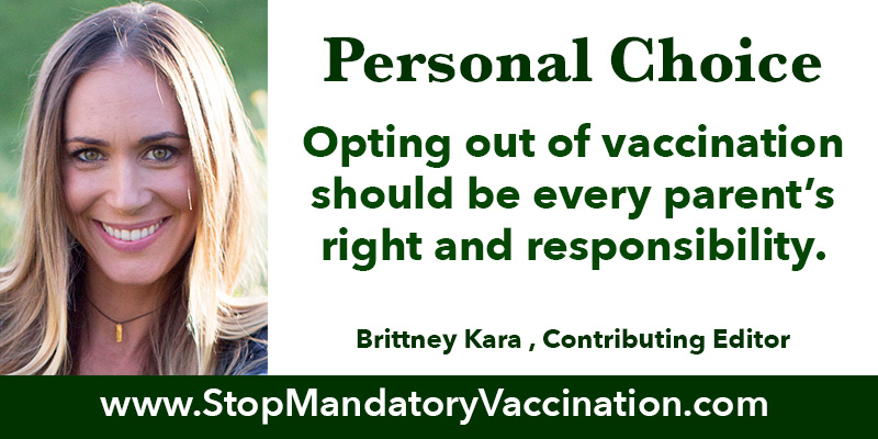 BrittneyMainSlider-250pixelsMy name is Brittney Kara and my husband and I are parents who have chosen not to continue vaccinating our children. After thoroughly investigating and carefully weighing the risks and benefits of each vaccine, we have concluded that the current vaccines are not safe for our children and that they are not required for the optimum health of our children.