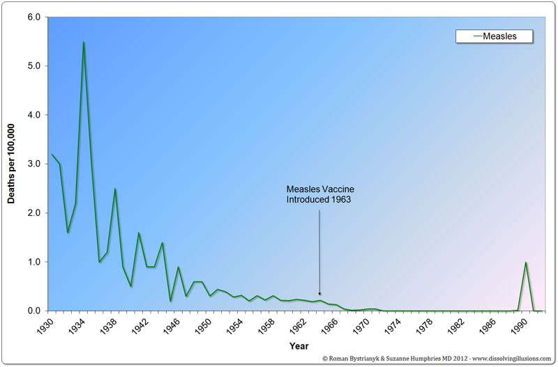 From Dissolving Illusions – U.S. Measles Deaths 1930 – 1992
