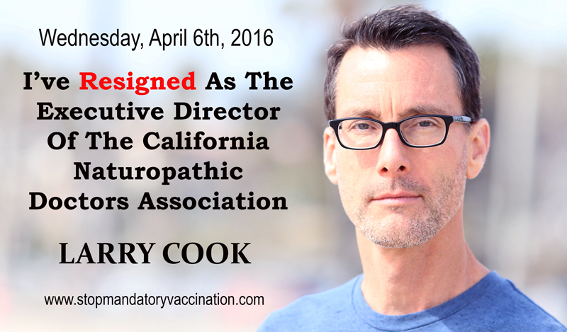 I’m writing to let you know that after four years of service to the naturopathic community, to naturopathic doctors and to the California Naturopathic Doctors Association (CNDA), I have resigned as their Executive Director, effective April 2nd, 2016. This letter is both for NDs who I have served in California and nationally, and also for those in the Stop Mandatory Vaccination community who I also serve in California, nationally, and internationally. Before I begin, here is – in part – the press release from the CNDA that was released earlier today announcing my resignation: