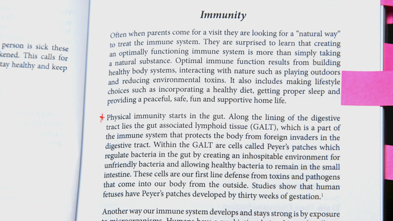 That’s pretty powerful. Let me move on. This is partial discussion about immunity. Physical immunity starts in the gut. Along the lining of the digestive tract lies the gut associated lymphoid tissue, which is a part of the immune system that protects the body from foreign invaders in the digestive track. Within the GALT are cells called Peyer’s patches which regulate bacteria in the gut by creating an inhospitable environment for unfriendly bacteria and allowing healthy bacteria to remain the small intestine. These cells are our first line of defense from toxins and pathogens that come into our body from the outside. Studies show that human fetuses have Peyer’s patches developed by 30 weeks of gestation. That’s pretty amazing.