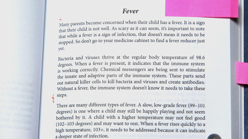 I just can’t even tell you how many times a parents asks about fever in my group. And I gotta tell you, 98% of the time, you should not be lowering that fever. That’s why you need this book. You need to understand this stuff. Alright, moving on.