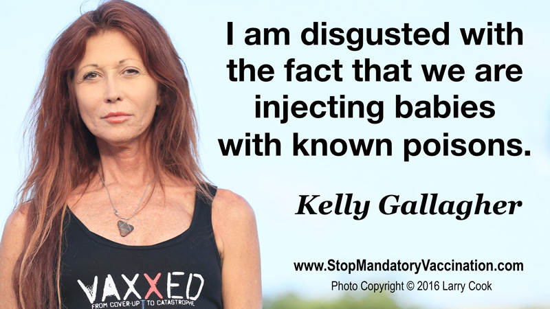 I don’t vaccinate because on my search for the truth about mercury, I’m a documentary film maker, I was researching my own history and found out that I had a contaminated polio vaccine that may have contributed to the fact that I’ve had cancer 5 times, followed by 6 pacemakers and a new heart valve. I really think that we are all vaccine injured. Because of what’s occurred, the branding, the marketing, the propaganda that we’ve all been lead to believe that we need these things that we may have never needed any of it. The more that I research … I set out thinking that we could have safe vaccines or green vaccines. After working on this film, after doing all of the research, trying to work on a website for Dr. Andrew Wakefield, and really having to read all of the research, and all of the writings, and all of the facts, I am so angered, disappointed, just ugh. I am disgusted with the fact that we are injecting babies with known poisons. We’re injecting our military with known poisons. We’re injecting our elderly with known poisons all in the name of eugenics and population control. I’m over it. Everybody needs to wake up, do their own research, and find out the truth for yourself.
